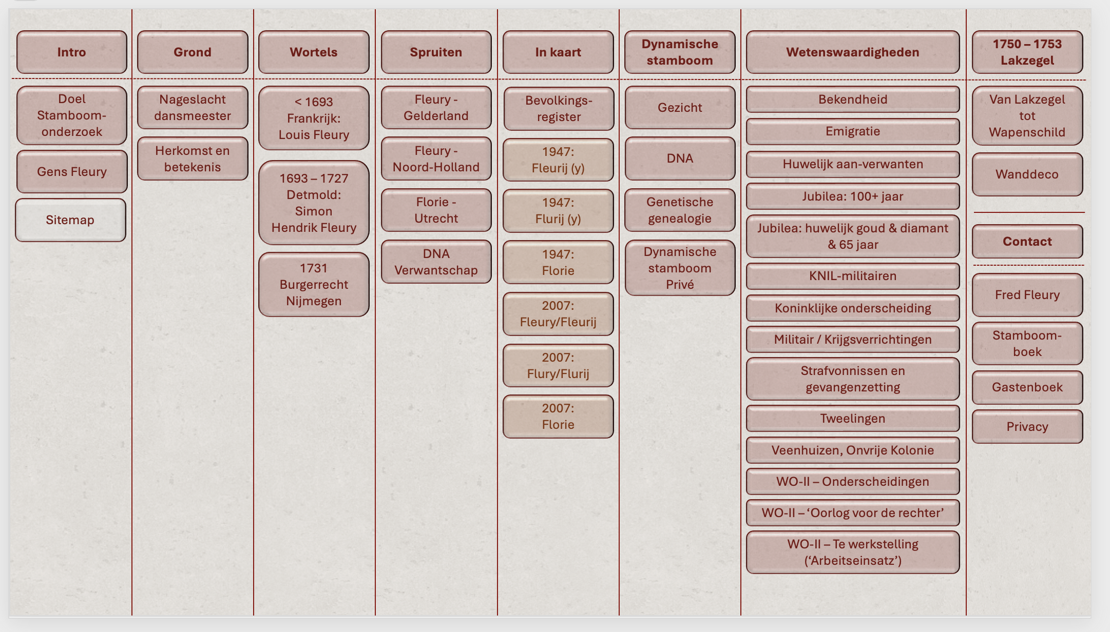 Menu-structuur: klik op een knop om naar de betreffende webpagina te gaan.